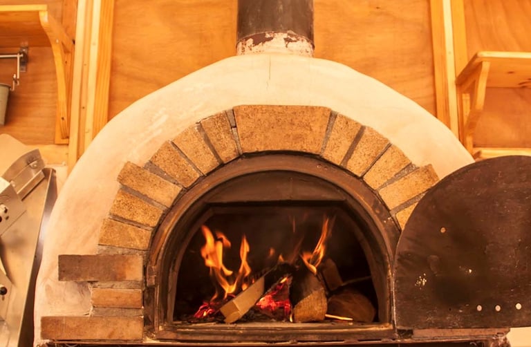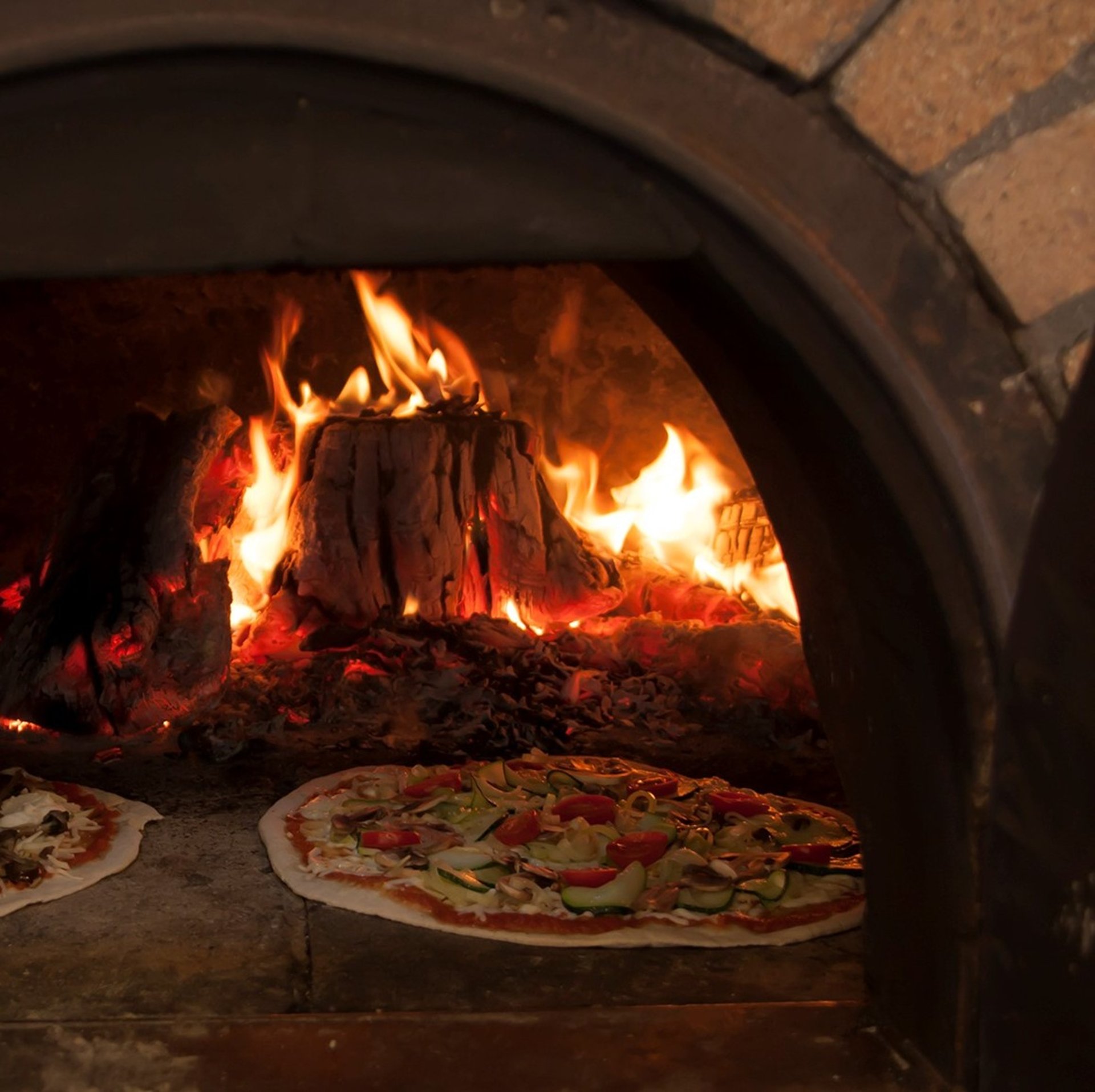 Amb el forn de llenya i la llenya tallada conscientment aconseguim unes altes temperatures, fent que la pizza trigui menys de 1 minut en sortir del forn.